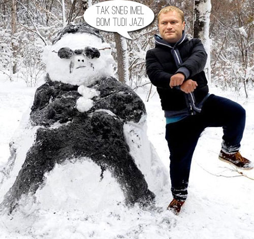 To ni šala. Niti vaja. Ne. Majkemi, častna titova. Sneg je nov, nerabljen, mehek ko putrček in se topi v ustih. Sam ne dajat v usta tistega koščka, kjer je pes prej lulal. Lahko iz njega delate snežake ali pa kepe. Ali pa katerokoli izmed norčij v spodnjem videu.